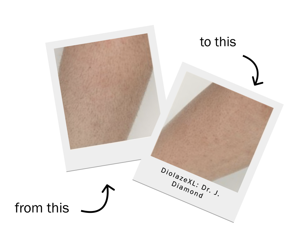 DiolazeXL MAX can be safely used on most areas of the face and body to remove unwanted hair, targeting coarse and stubborn hair for all skin types.